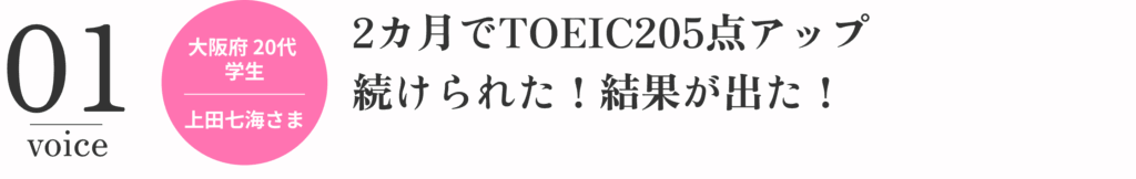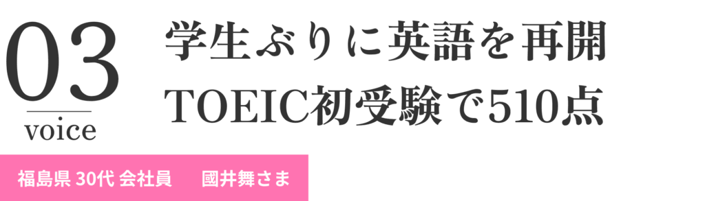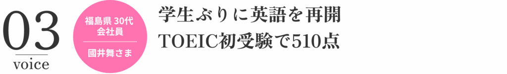 かなり単語を忘れていたので、単語を強化していただいたことで、TOEICのテストでも自動的にリーディングのスピードが上がっているのを実感できました。